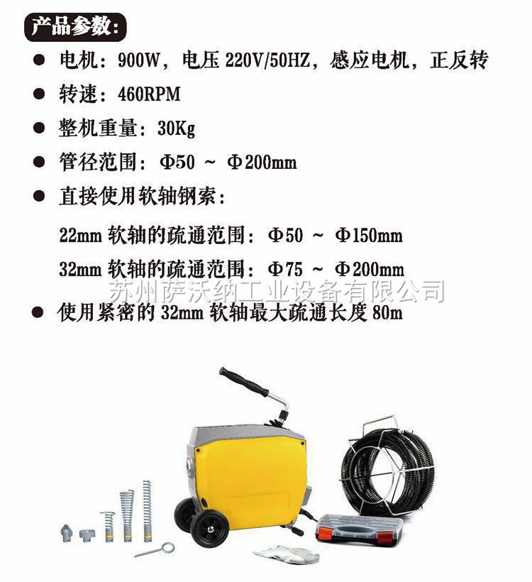 使用緊密的32mm軟軸最大疏通長(zhǎng)度80m