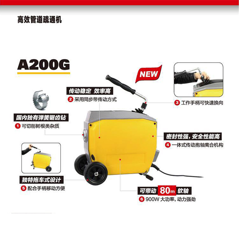 虎王A200G高效管道疏通機(jī)特點(diǎn):