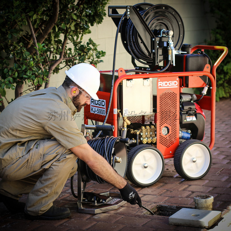 RIDGID KJ-5000 型便攜式超高壓清洗機可產生 5075 psi 的實際工作壓力,能高效地用于商業和工業管道清洗應用。這款超高壓清洗機將極其軟而輕的管推入 50mm 至 250mm 管道 — 沖走污泥、肥皂和油脂及沉積堵塞物。拉回軟管時,它的動力會刷洗管道,沖走殘渣,使管道恢復暢通無阻的狀態 – 完全無需使用有害的化學品。2" 至 10"(50 至 250 mm)管道